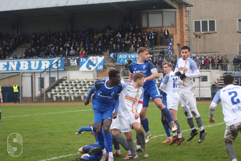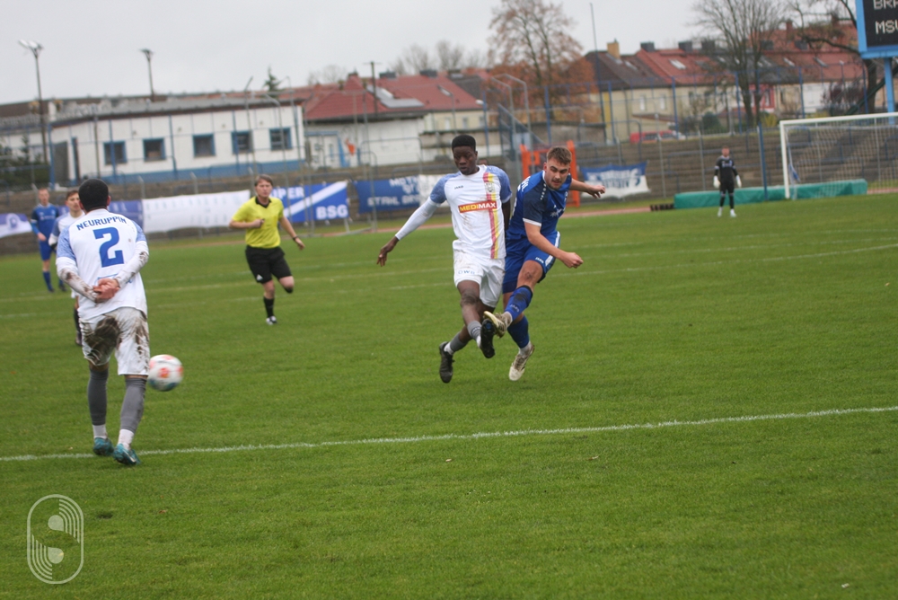 Bereits in der 6. Minute lag die Führung in der Luft. Justin Inter, der nach langer Zeit wieder einmal in die Startelf rutschte und einen guten Eindruck hinterließ, flankte von links in den Strafraum, der Ball wurde zu kurz abgewehrt, genau vor die Füße von Luca Benedict Köhn, dessen Schuss aus zwölf Metern am rechten Pfosten vorbei ging. Kurz darauf wurde es zum ersten Mal brenzlig im Strafraum der Gastgeber, doch Maximilian Glomm (8.) klärte im letzten Moment zur Ecke. Zehn Minuten später stand Felix Baitz im Focus, als ein Neuruppiner nach einem abgefälschten Ball frei vor ihm auftauchte, doch er machte sich groß, verhinderte so den Rückstand.