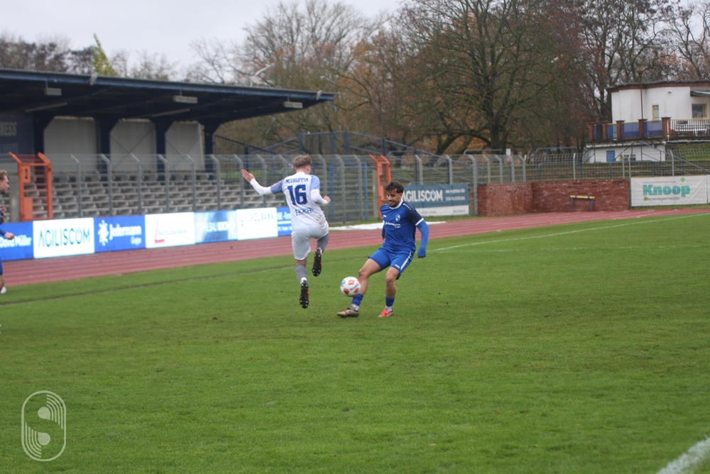 Doch mit der Zeit profitierten eher die Neuruppiner von seiner Art der Spielleitung. In mehreren Situationen wurden die Stahl-Angreifer knapp vor der Strafraumgrenze aber auch dahinter mehr als hart attackiert, ohne dass es geahndet wurde. In der 72. Minute ließ sich Hoyer nicht aufhalten, drang rechts in den Sechzehner, seinen Schuss wehrte Ivan Tiurin zur Ecke ab. Fast im Gegenzug erspielten sich die Neuruppiner ihre erste Chance nach dem Wiederanpfiff, doch Max-Bennet Säger klärte im Liegen vor dem eigenen Tor. Kurz darauf fiel dann doch der unerwartete Ausgleich. Nach einem Eckball kamen die Gäste zu einer Kopfballstafette im Stahl-Sechzehner, die auf der linken Seite bei Rafael Conrado Prudente endete, der über Baitz per Kopf ins lange Eck traf. Ausgerechnet der Ex-Stahlspieler erwies sich als Spielverderber.