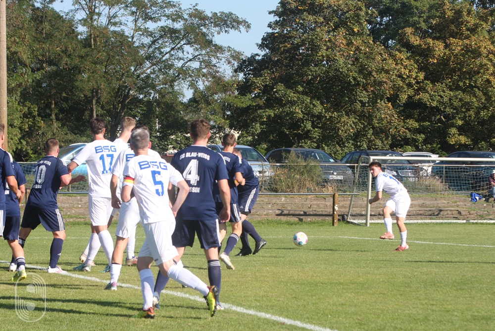 Mehr als die Hälfte der 700 Zuschauer bekannte sich zu den Blau-Weißen. Würden ihre „Lieblinge“ dem Nervendruck standhalten und nicht in Lähmung erstarren? An der „Angst vor dem Siegen“ sind schon ganz andere Mannschaften gescheitert. Doch die Gäste waren vom Anpfiff weg hochkonzentriert. Schon in der Anfangsminute schien die Führung fällig durch Benjamin Nwatu, doch Nils Müller sorgte für eine Abseitsstellung.