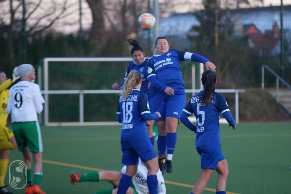 Doch die Gastgeberinnen zogen keinen Vorteil daraus, dass sie diesen Untergrund gewöhnt sind. Sie standen sehr tief, überließen den Brandenburgerinnen fast kampflos den Platz im Mittelfeld. Die Gäste traten offensiv auf, kamen von Beginn an zu Chancen, die sie aber zunächst nicht clever ausspielten. In der 8. Minute setzte sich Vanessa Bürger jedoch energisch durch und besorgte mit einem überlegten Schuss die Führung. Und die Stahl-Frauen blieben dran, wollten nachlegen. Angesichts des massiven Abwehrriegels aber leichter gesagt als getan. Für viel Torgefahr sorgte Frieda Moderegger, wenn sie sich über Außen in den Sechzehner durchtankte, doch ihre Pässe vor das Tor fanden keinen Abnehmer.